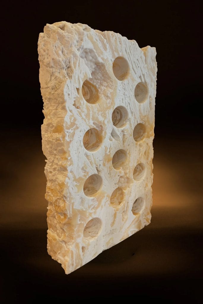 The Naica Onyx Marble Wine Rack is a luxurious addition to any wine enthusiast’s collection. This elegant piece is meticulously handcrafted from Naica Onyx Marble, known for its captivating white and yellow hues and intricate rock formations. With 12 perfectly sized holes, it provides a stylish and functional way to display and store your favorite wines. Measuring 35x20x6 inches, this wine rack is not only a practical storage solution but also a statement piece that adds sophistication and natural beauty to your home décor.