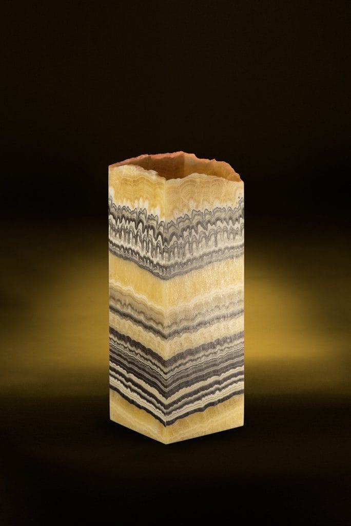 Exhibiting black and white banded stone that has been formed throughout millions of years, the Strata Table Lamp is truly a stunning work of art. Black and white banded cube lamp with live edge in two sizes 40x15x15 and 30x15x15 cm