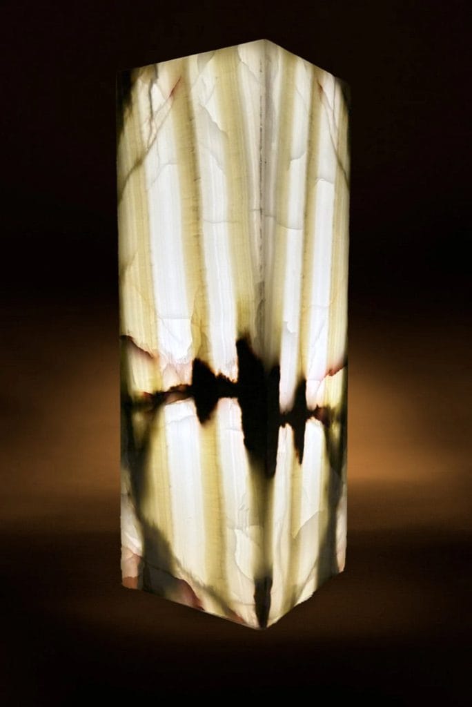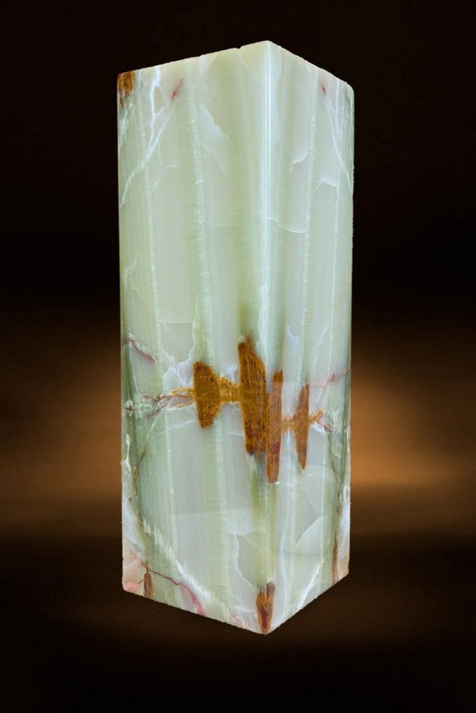 Expertly handcrafted from Zion Onyx Marble, this table lamp featuring warm earthy greens with unique patterns. The square design captures the timeless elegance of natural stone, making it a statement piece for any refined interior. Each item is unique, showcasing the artisanal craftsmanship that defines our collection. Approximate dimensions: 17.7 x 5.9 x 5.9 inches.